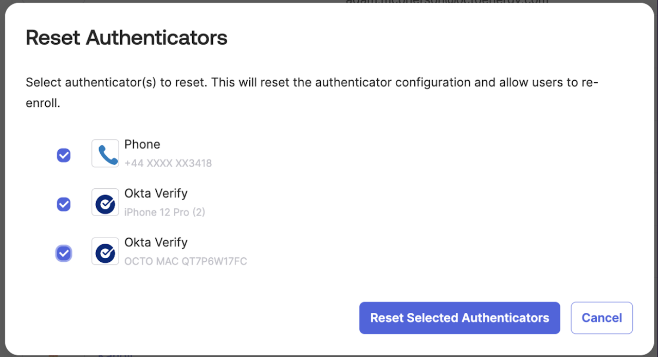 To reset authenticators (such as a phone number or Okta verify):